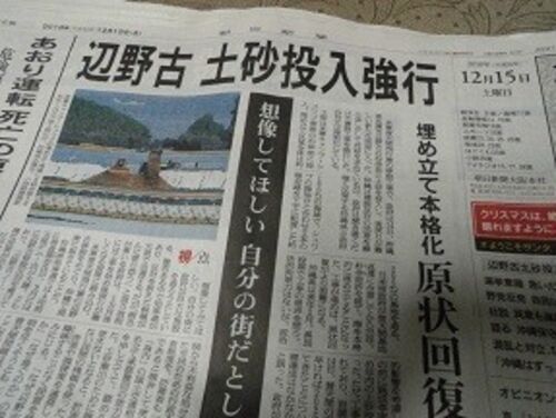(本日2つ目です) ◎昨日14日、とうとう辺野古の海に土砂が投入されました。玉城デニー沖縄県知事のコメント「数々の違法な行為を行い、法をねじ曲げ、民意をないがしろにし、県の頭越しに工事を進めることは、法治国家そして国民に主権があるとする民主主…