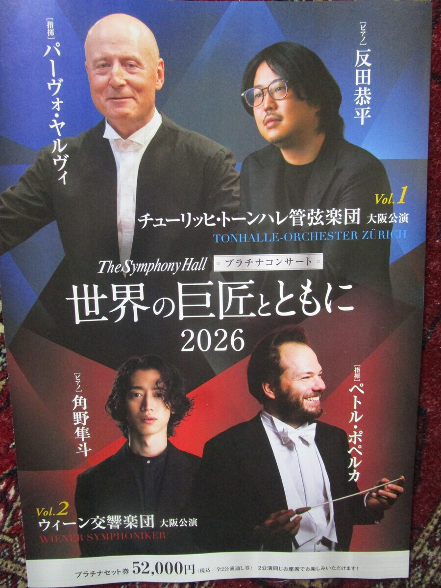 反田恭平とチューリッヒ・トーンハレ管弦楽団、角野勇斗とウィーン交響楽団、合せて「プラチナセット券5万2千円!」 すごいですね~。でも、きっとチケットはすぐ完売になりますね。このお二人、今、聴きたい人がきっと大勢いると思います。チケット争奪戦かも。